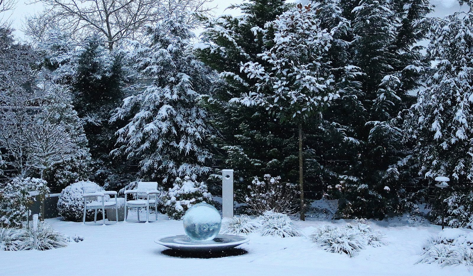 As the seasons shift and temperatures drop, the Aqualens Sphere Fountain takes on an entirely new personality. While designed for year-round enjoyment, the fountain reveals a striking, sculptural beauty in winter—especially when frost and icicles form on the acrylic sphere. The shimmering surface becomes a canvas for nature itself, reflecting the crisp light of the season in magical ways.