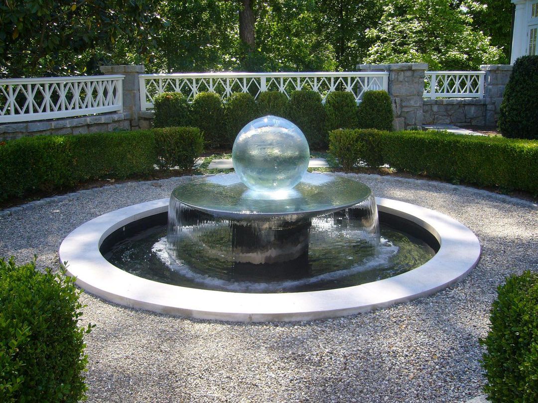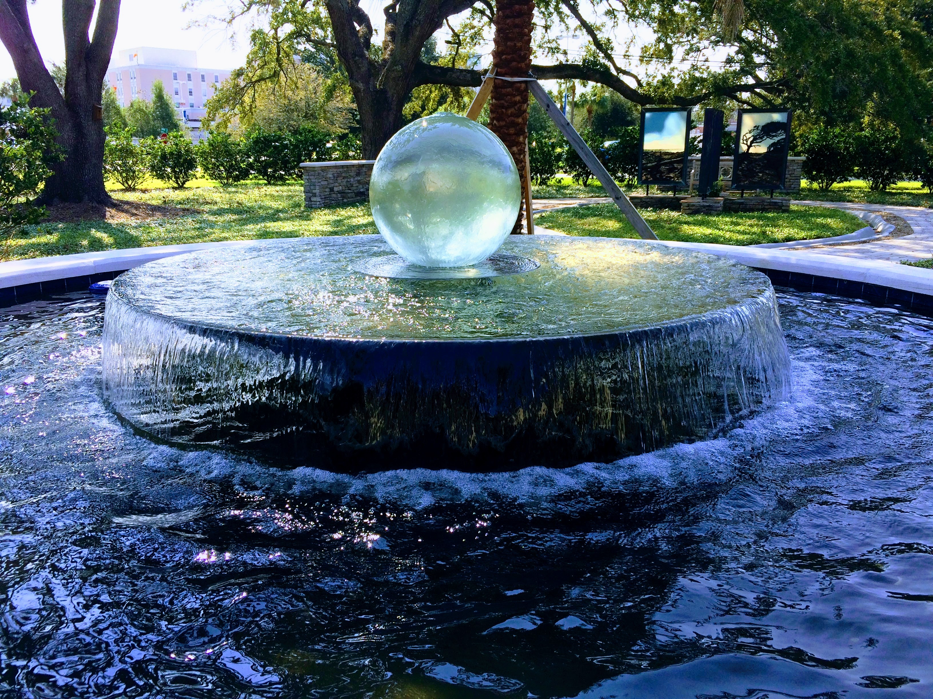 At Nunnally House in Georgia, this 2-foot Aqualens sphere in an 8-foot dish overflows into a lower basin, offering visitors a calming focal point of gentle sound and serene reflection in a space of comfort and care