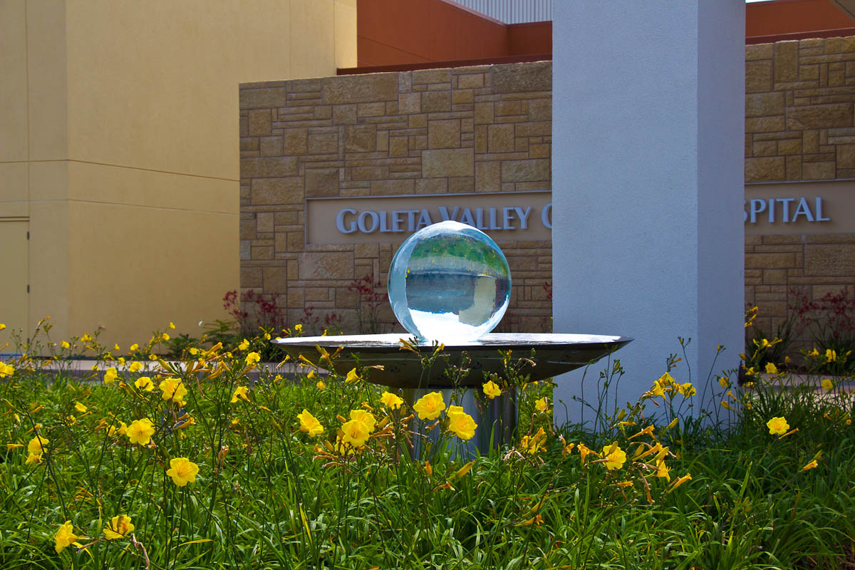 Positioned near the hospital entrance, the raised Aqualens sphere offers a calming focal point that greets visitors with reflection and serenity.
