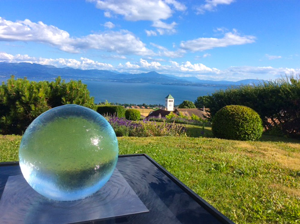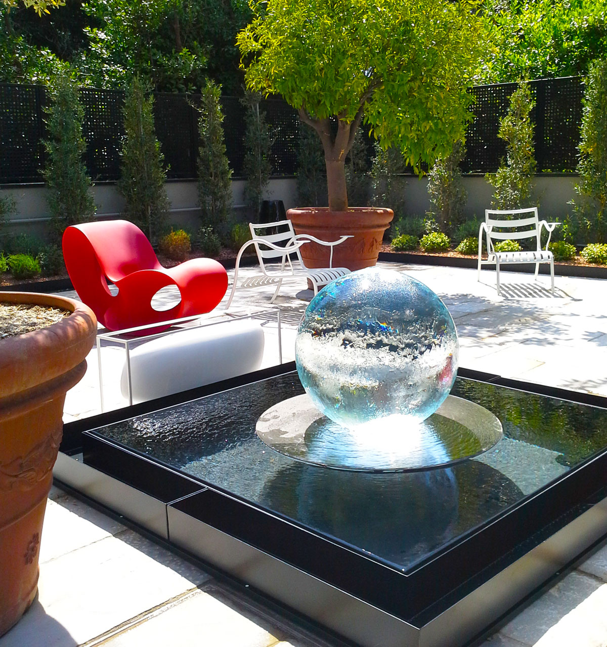 This custom designed Aquasphere adds the perfect touch of modernity to this outdoor space.