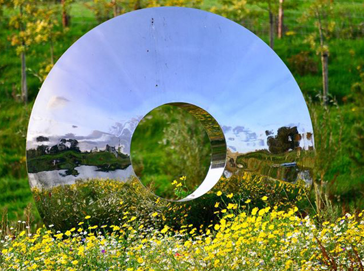 Crafted from mirror-polished 316 stainless steel, the Steel Eye’s surface reflects its surroundings with ever-changing clarity—sky, garden, architecture, and people become part of the artwork itself. This versatility allows the piece to transform seamlessly across environments, whether as a bold focal point in a landscape or a commanding presence in a gallery.